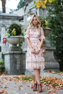 Bardzo często widzę w sklepach takie sukienki - halka z tiulem lub koronką, do tego dodatkowe falbanki i wyszywane kwiatowe wzory. To idealny model dla romantyczek, szczególnie tych o drobnej sylwetce, które chciałyby dodać swojej figurze więcej krągłości i kobiecości.